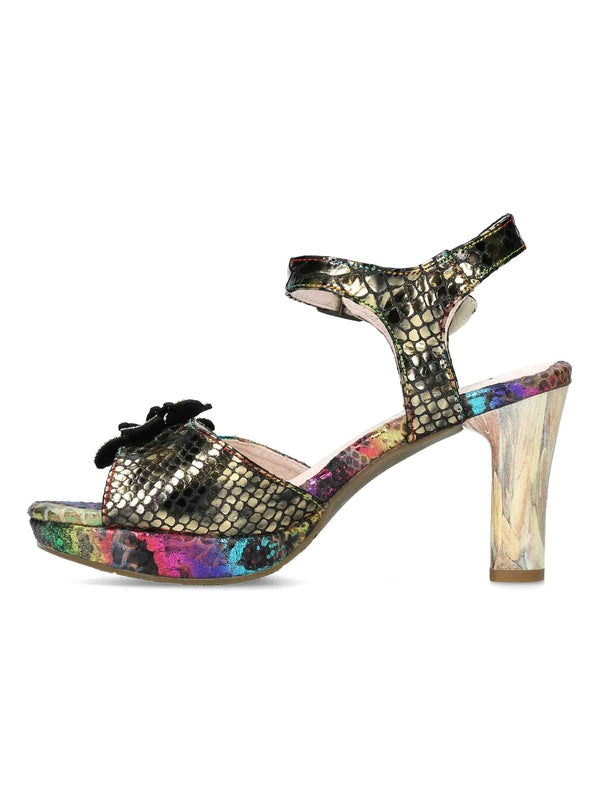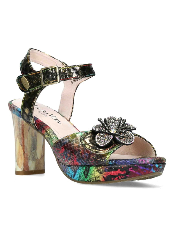 Sandales à talon de chez Laura Vita. Original et unique a porter en toute occasion. Sa double fermeture à scratch et boucle, très pratique.